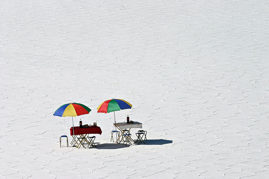 Pique-nique au milieu du Salar d'Uyuni