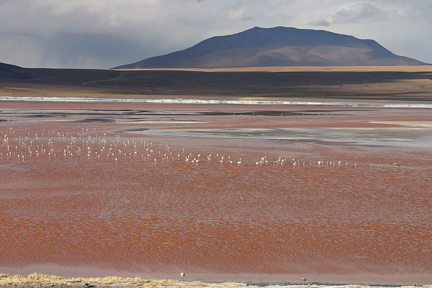 Rassemblement de flamants roses sur la Laguna Colorada (4278m)
