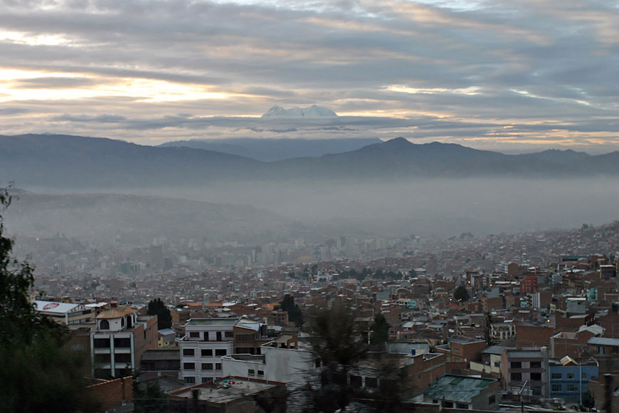 Vue sur la Paz et le Nevado Illimani (6402m) au petit matin