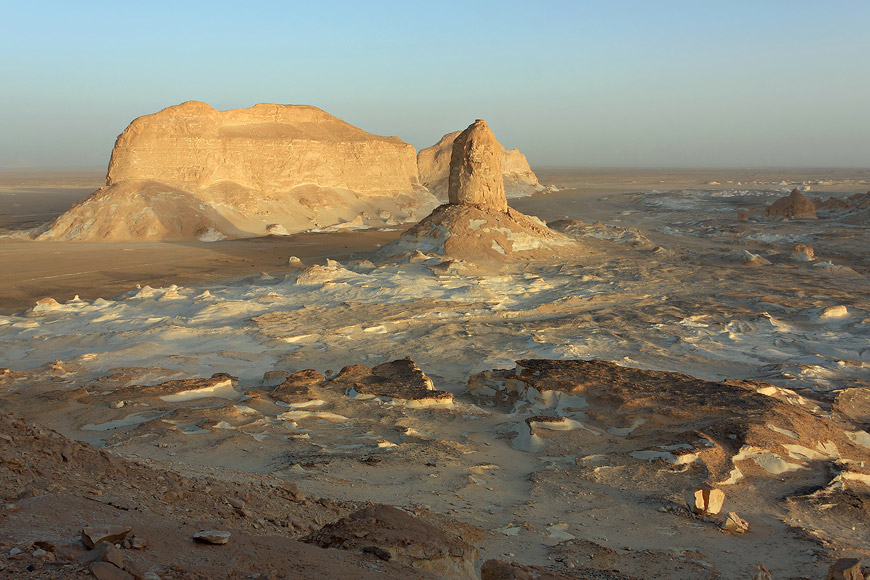 Lumière du soir sur les pitons calcaires du Désert Blanc