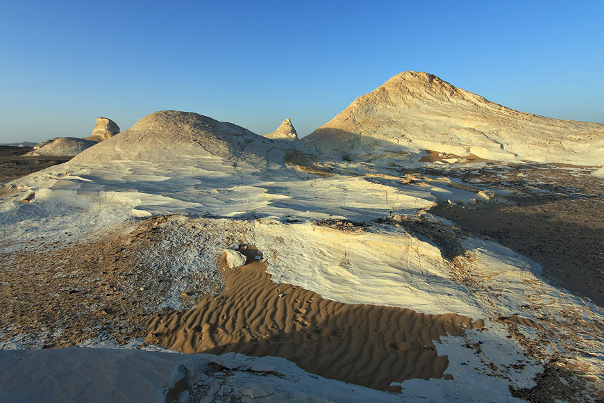 Lumière du soir sur les dômes calcaires du Désert Blanc