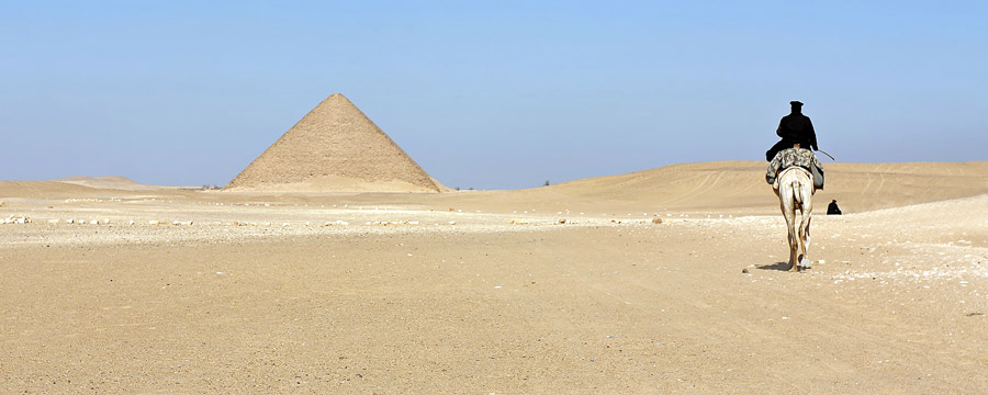 | Un garde de la police touristique se dirige vers la pyramide rouge de Snéfrou - Dahchour | EOS 40D | EF 17-40mm (40mm) 1/640e | f/8 | iso-100 |