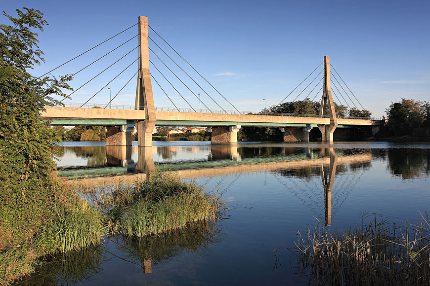 Pont haubané permettant à un aqueduc de franchir le canal de Jonage | EOS 40D | EF 17-40mm (20mm) 1/200e | f/8 | iso-100 |