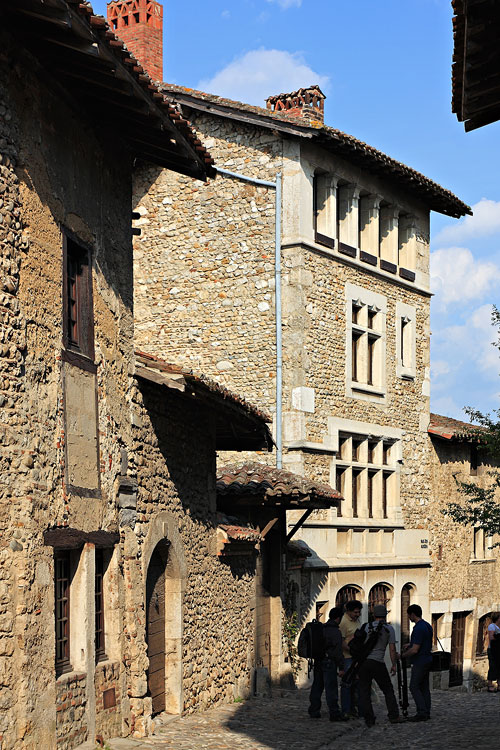 Maison en pierre et fenêtres à meneaux rue des Rondes - Pérouges