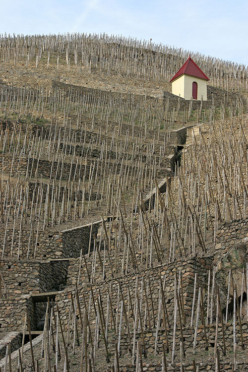 Le vignoble en terrasse de Côte-Rôtie au dessus d'Ampuis