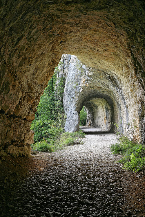 Tunnels dans la falaise de la Charabotte vers Nantuy (Bugey)