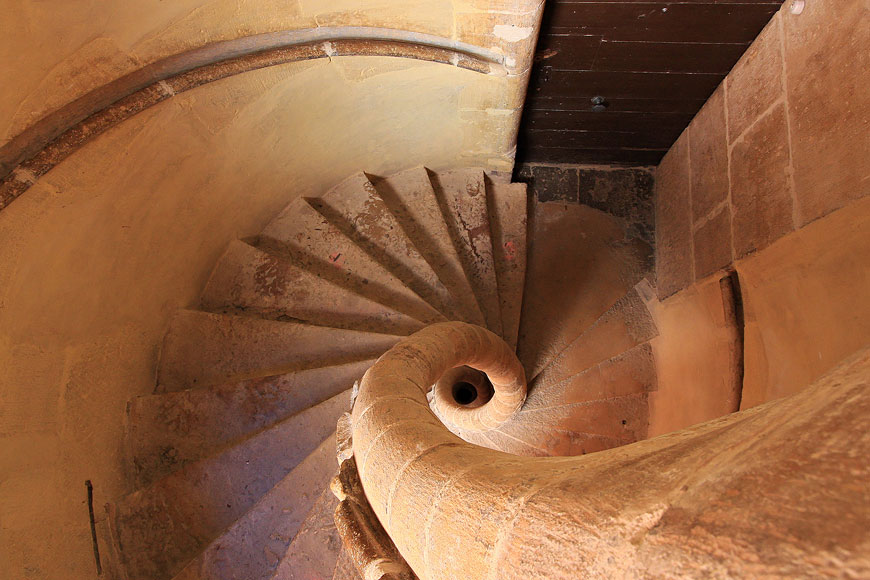 Escalier à limon déplacé rue Lainerie, vue plongeante sur le noyau - Vieux-Lyon | EOS 40D | EF-S 10-22mm (13mm) 1/13e | f/9 | iso-800 |