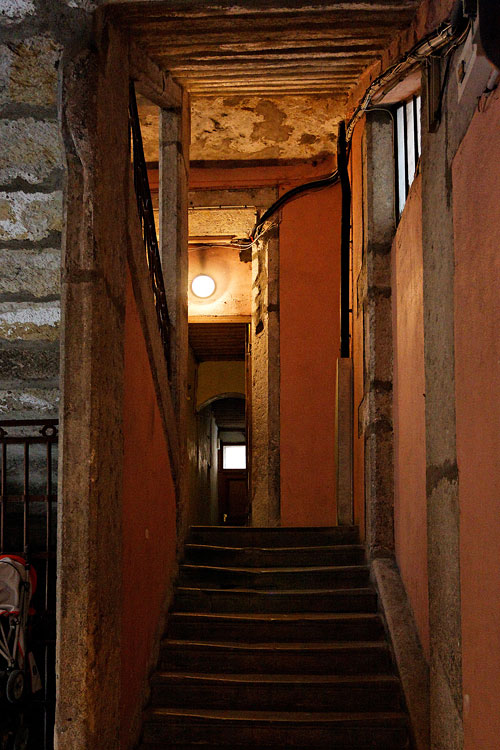 Un escalier d'un immeuble canut - Rue Leynaud, les Pentes EOS 40D | EF 17-40mm (21mm) | 1/20e | f/4 | iso-1250 |