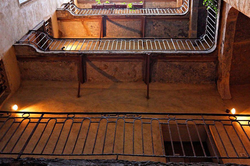 Balustrades dans une cour intérieure de la Longue Traboule entre les rues Saint-Jean et du Boeuf | EOS 40D | EF 17-40mm (22mm) 1/50e | f/4 | iso-1000 |