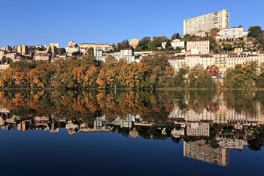 Les immeubles de la Croix-Rousse se reflètent parfaitement dans le Rhône | EOS 40D | EF 17-40mm (17mm) 1/250e | f/8 | iso-100 |