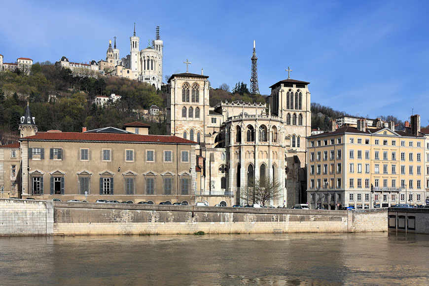 La cathédrale Saint-Jean au bord de la Saône; en haut de la colline, la basilique de Fourvière | EOS 40D | EF 17-40mm (29mm) 1/400e | f/8 | iso-100 |