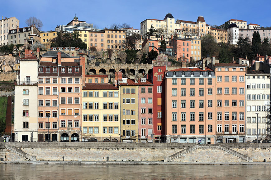 Les immeubles du quai Fulchiron entre la Saône et la colline Fourvière