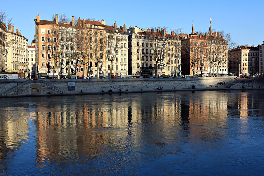 Immeubles sur le quai Saint-Antoine au bord de la Saône | EOS 40D | EF 17-40mm (28mm) 1/400e | f/8 | iso-200 |