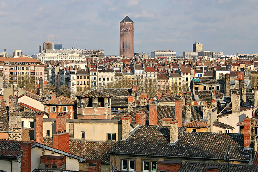 Les toits du Vieux-Lyon, au fond la Part-Dieu