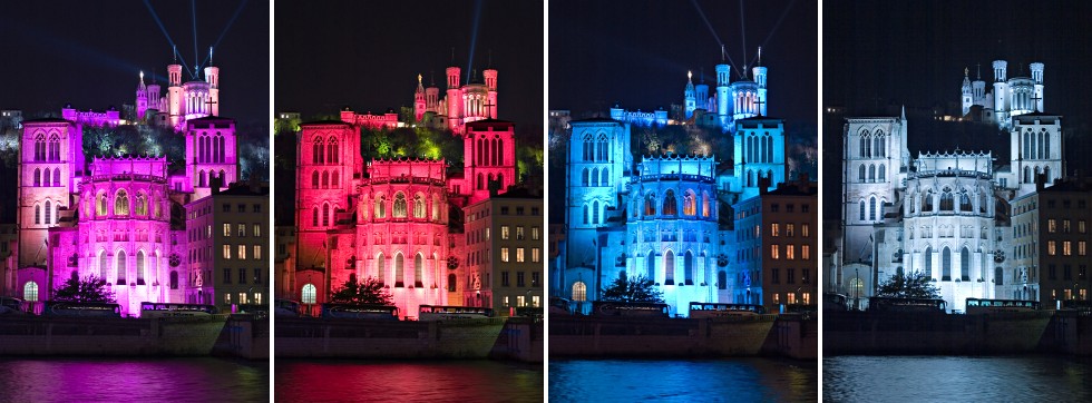 La Basilique de Fourvière et la Cathédrale Saint Jean - Mises en lumières par LC 2000 | EOS 300D | EF 50mm Montage de 4 photos |