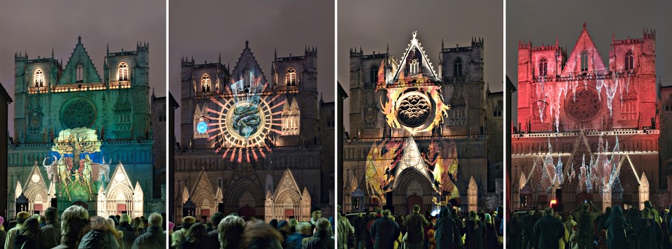 La façade de la cathédrale Saint Jean - Mise en lumières par LC 2000 | EOS 300D | EF 17-40mm Montage de 4 photos |