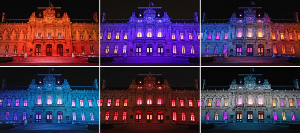 La Préfecture, mise en lumière par Les Orpailleurs de Lumière "Ouvert la nuit" | EOS 40D | EF-S 10-22mm (14mm) | f/5.6 | iso-200 Montage de 6 photos |