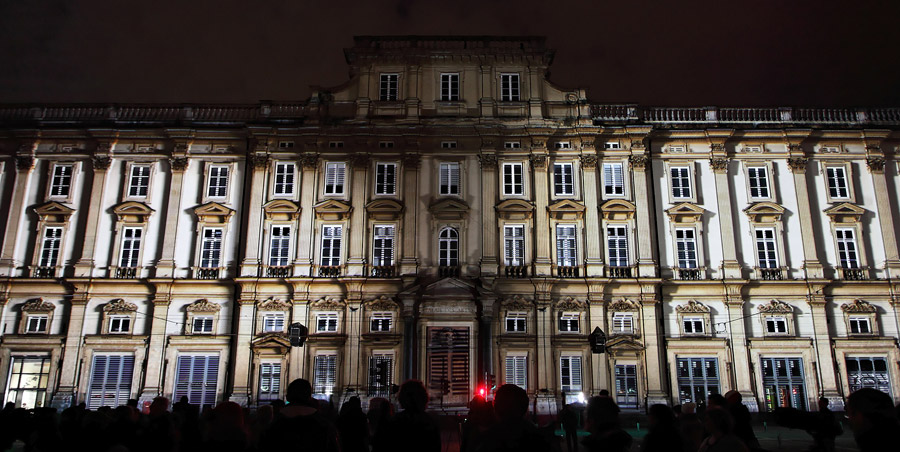 Le palais Saint-Pierre - Place des Terreaux «Transe nocturne» par Marie-Jeanne Gauthé / Light Motif | EOS 5D Mk II | EF 17-40mm (20mm) 1/5e | f/4 | iso-1250 |