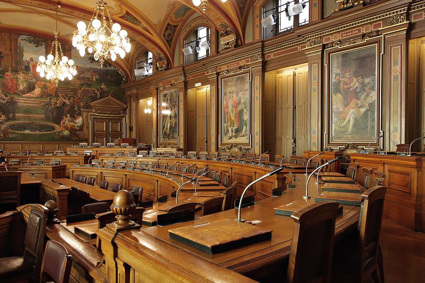 Salle du Conseil Municipal Hôtel de Ville de Lyon | EOS 40D | EF-S 10-22mm (16mm) 1/50e | f/5 | iso-1250 |