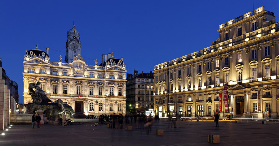 L'Hôtel de Ville et le palais Saint-Pierre (Musée des Beaux-Arts) sur la place des Terreaux