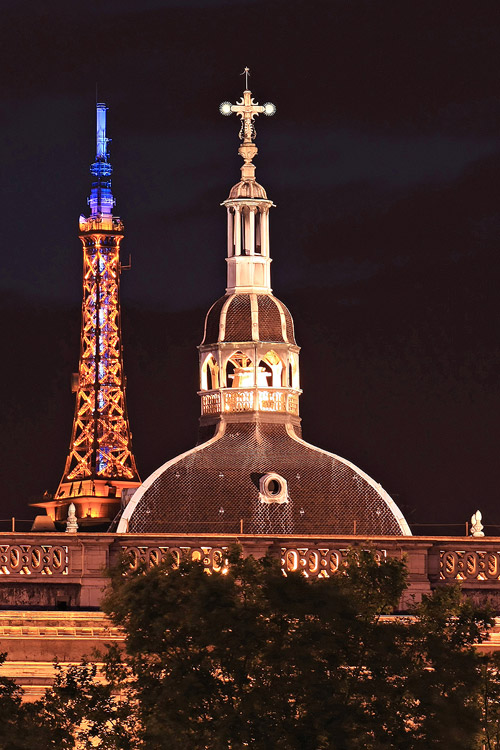 Une tour de l'hôpital de l'Hôtel Dieu et l'émetteur de Fourvière