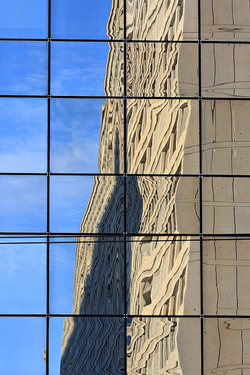 Reflet d'un immeuble dans une façade du cours Lafayette