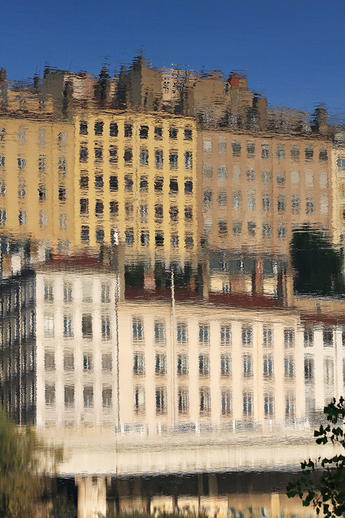 Reflet des immeubles des pentes de la Croix-Rousse dans le Rhône