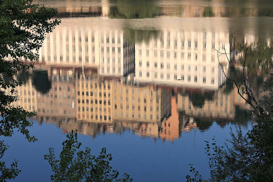Reflet des immeubles des pentes de la Croix-Rousse dans le Rhône