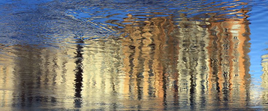 Reflet des immeubles du quai Saint-Antoine dans la Saône