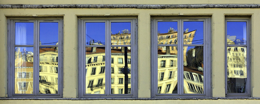 Reflet d'immeubles dans des fenêtres du quai Pierre Scize
