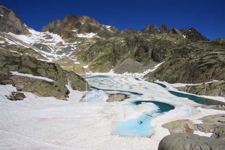 | Chamonix - Vue sur le lac Blanc (2352m) encore gelé | EOS 40D | EF-S 10-22mm (10mm) 1/800e | f/9 | iso-200 |