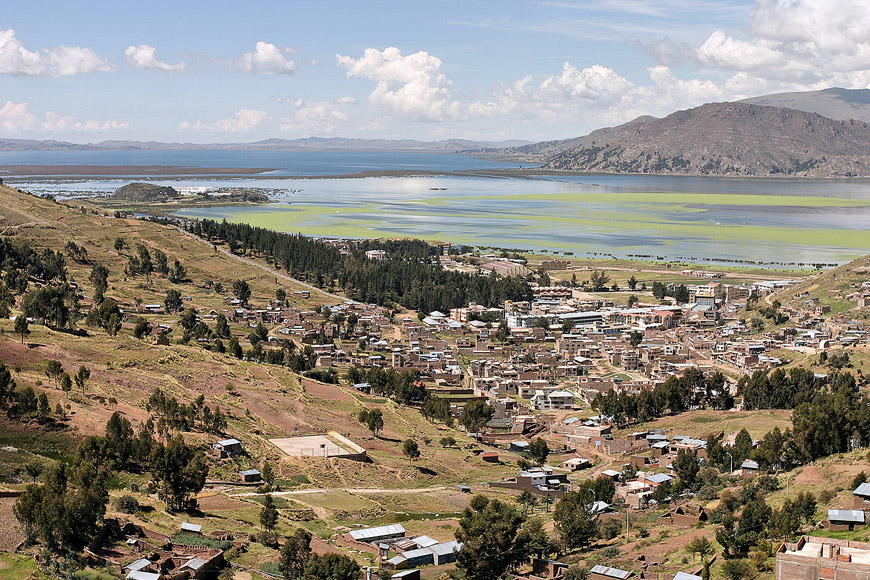 Vue sur un quartier de Puno et le Lac Titicaca