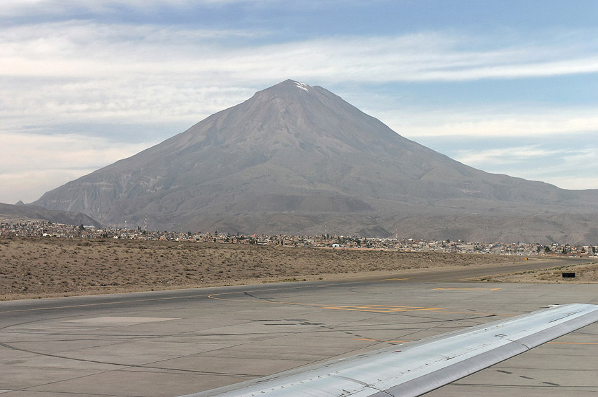 Le volcan El Misti vu depuis l'aéroport d'Arequipa