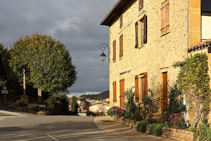 Maison en pierres dorées du village d'Oingt dans le Beaujolais