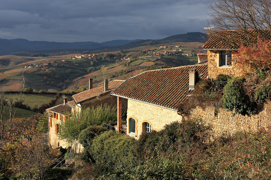 Maisons en pierres dorées du village d'Oingt dans le Beaujolais