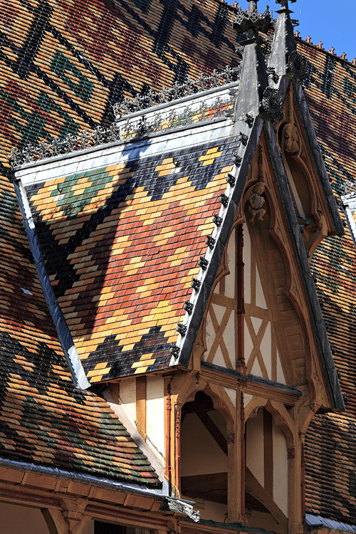 Une lucarne sur la toiture bourguignonne des Hospices de Beaune EOS 5D Mk II | EF 70-200mm IS (144mm) | 1/250e | f/8 | iso-100 |