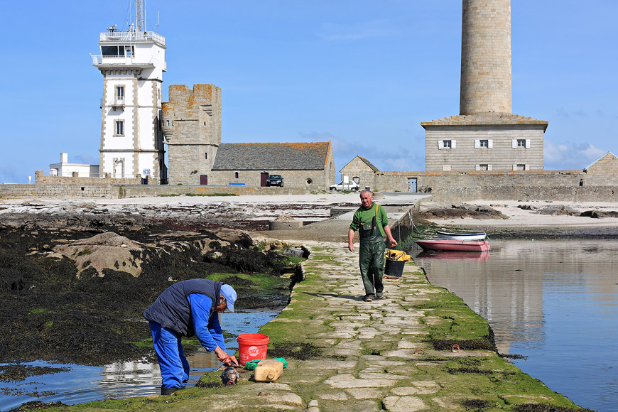 Pêcheurs au pied du phare d'Eckmühl à Penmarc'h