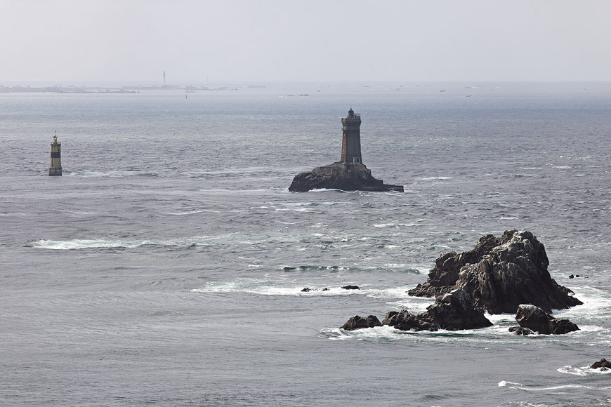 Le phare de la Vielle et la tourelle de la Plate dans le raz de Sein