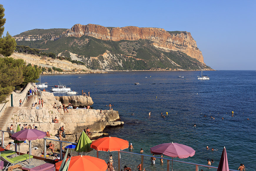La falaise du Cap Canaille (394m) depuis la plage du Bestouan à Cassis