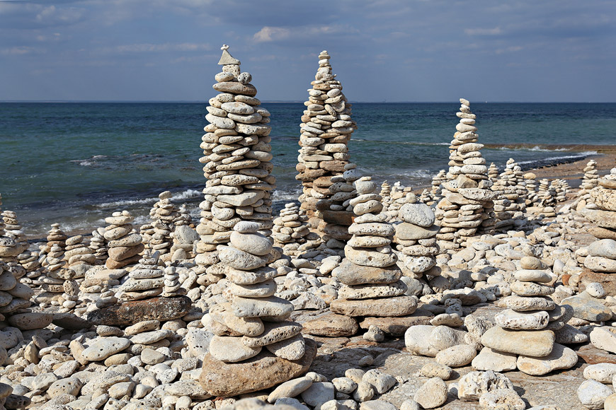 Cairns sur une plage vers le phare des Baleines Ile de Ré | EOS 5D Mk II | EF 24-70mm (42mm) 1/640e | f/8 | iso-100 |