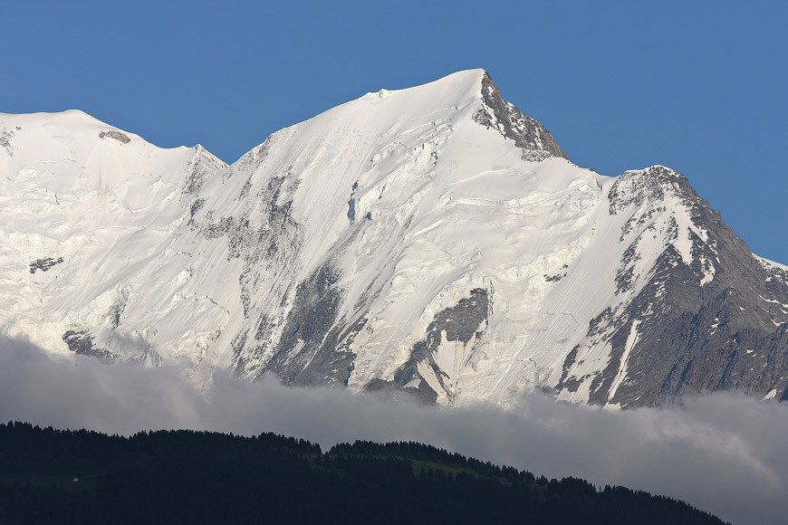 Vue sur l'aiguille de Bionnassay (4052m) | EOS 40D | EF 70-200mm IS (183mm) 1/400e | f/8 | iso-100 |
