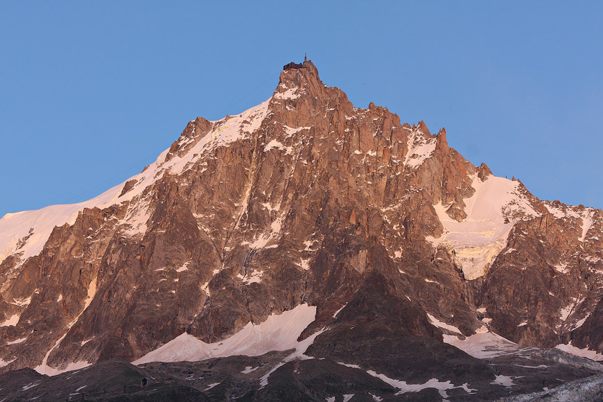 L'aiguille du Midi (3842m) au coucher du Soleil | EOS 40D | EF 70-200mm IS (85mm) 1/200e | f/8 | iso-400 |