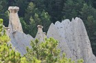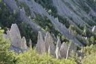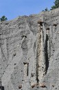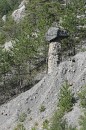 Le département des Hautes-Alpes est connu entre autre pour le lac de Serre-Ponçon et la citadelle de Briançon, mais en raison de la météo peu favorable que nous y avons rencontré, je n'ai pas pu réaliser de belles images de ces lieux... Heureusement le Soleil a tout de même fait quelques belles apparitions pendant ce weekend, en particulier lors de notre découverte de la vallée de la Durance entre Tallard et le lac de Serre-Ponçon. L'attrait principal de ce secteur est géologique : il recèle de formidables ensembles de cheminées de fées (Demoiselles Coiffées). Nous avons parcouru deux ensembles : le petit site au dessus du village de Remollon, mais aussi et surtout le site de Théus, la plus grande concentration de cheminées de fées d'Europe. Théus est un petit village accroché à l'adret d'une montagne qui domine la Durance ; le départ de la randonnée s'effectue dans une épingle juste avant le village. Ce sentier, qui remonte le vallon du Vallauria jusqu'à la Salle de Bal des Demoiselles Coiffées, permet de découvrir le site en quelques heures de marche. Le vallon est en fait une ancienne moraine hétérogène (argiles et blocs) déposée par les glaciers ; une cristallisation sous les blocs, combinée au ruissellement des eaux de pluies qui arrache et emporte les éléments instables, entraîne l'apparition de ces Demoiselles Coiffées. |