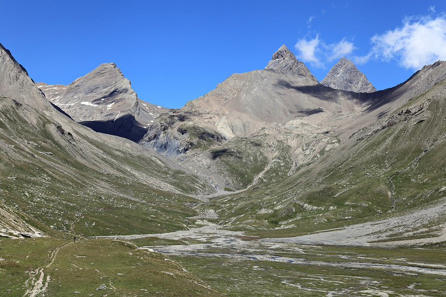 En remontant le vallon en amont du lac du Goléon ; au fond les aiguilles d'Arves | EOS 5D Mk II | EF 24-70mm (67mm) 1/320e | f/8 | iso-100 |