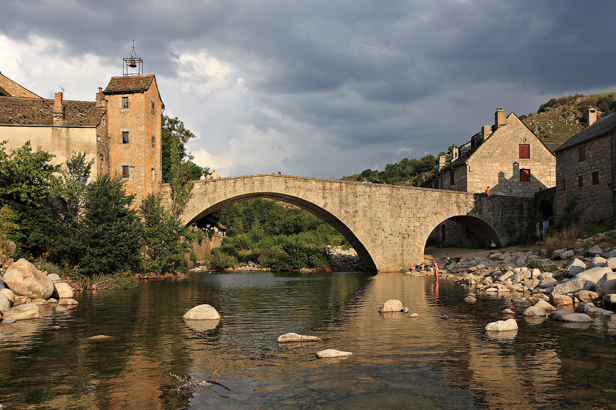 Le Pont-de-Montvert et son beffroi au bord du Tarn