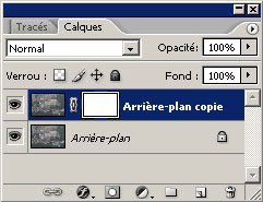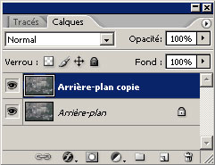 1) Affichez la fenêtre 'Calques' (Affichage\Calques ou bien touche F7) Dupliquez le calque (Calque\Dupliquer le calque) et sélectionnez le calque 'copie'