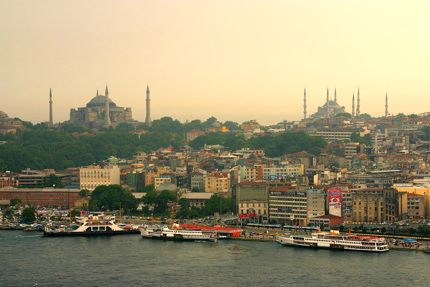 Vue sur Sainte Sophie et la Mosquée Bleue depuis la Tour de Galata | EOS 300D | EF 75-300mm (75mm) 1/125e | f/7.1 | iso-100 |