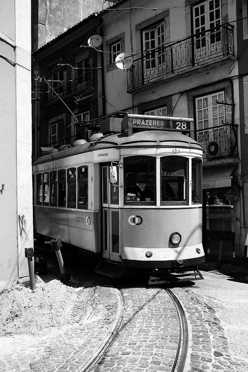 Sur la ligne de tramway n°28 dans l'Alfama EOS 300 - Négatif argentique numérisé |