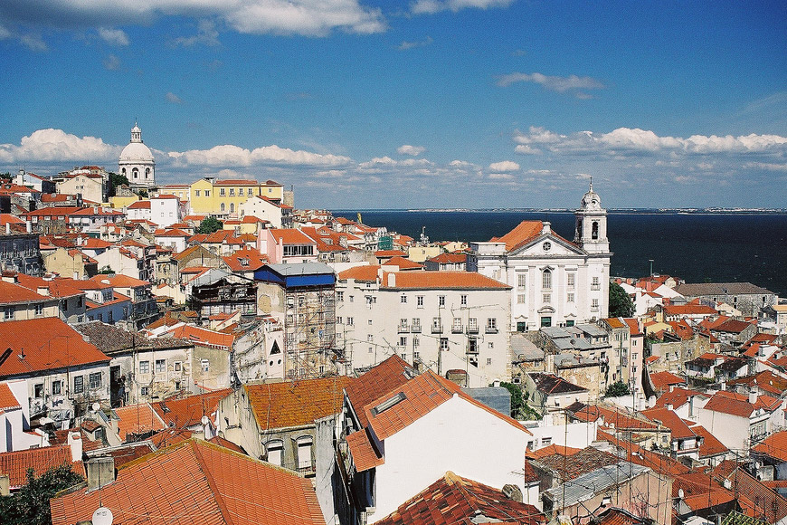 Les toits de l'Alfama et le Tage vus du Miradouro de Santa Luzia | EOS 300 Négatif argentique numérisé |