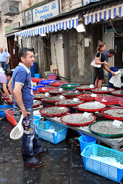 | Naples - Vendeurs de fruits de mer sur le marché de la Porta Nolana EOS 5D Mk II | EF 24-70mm (35mm) | 1/640e | f/3.5 | iso-400